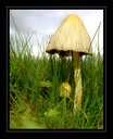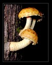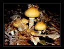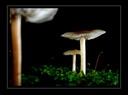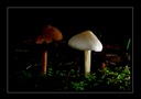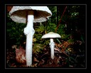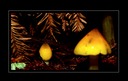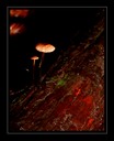 The mycological micro-environment surrounding the wild mushroom or wild mushrooms in a mushroom photograph is often what separates run-of-the-mill mushroom photographs from mushroom photographs which are destined to go through the transformation process to ultimately yield wild mushroom art prints. Fungi themselves are very diverse, and so are the environments in which they thrive. At times the best wild mushroom photograph for fungi photograph, and the one on a day's outing which may yield a final wild mushroom art print, is the mushroom photograph with the 'least' mushroom and the 'most' evocative surroundings (for example, Mute Ovation shown at Gallery California). Under other circumstances, the best mushroom photograph is the one with the 'most' mushroom and the 'least' surroundings (for example, Delight at Gallery California). Even the most physically similar wild mushrooms will virtually always be strikingly different, given different surroundings.